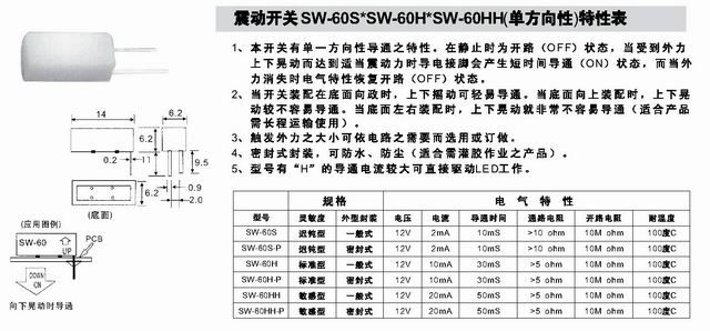 震動(dòng)開關(guān)SW-60SxSW-60HxSW-60HH(單方向性)