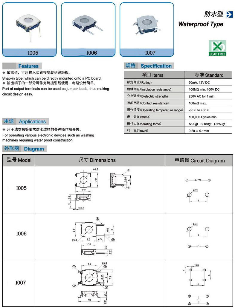 發(fā)布時(shí)間:2022-01-18 點(diǎn)擊:I003 I004(Waterproof Type)防水型 來(lái)源:中山健陽(yáng)達(dá)