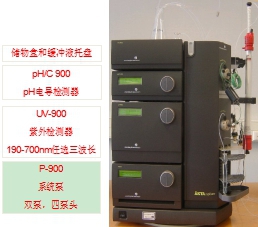 FIG 1、AKTA EXPLORER主機Pump-900 為雙通道梯度泵系列。在AKTAexplorer 100,流速范圍0.01-100 ml/min,壓力高達10 Mpa(泵名為P-901)。在AKTA explore10,流速范圍0.001-10 ml/min,壓力高達25 Mpa(泵名為P-903)。