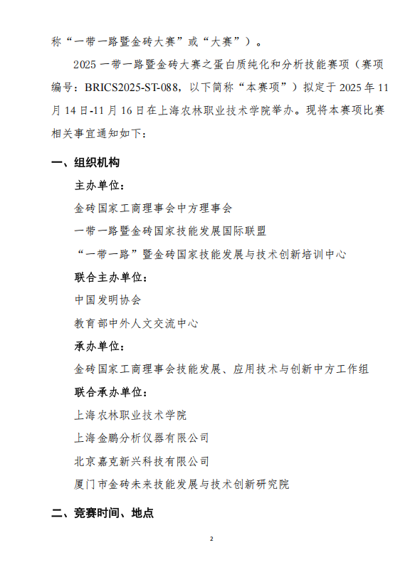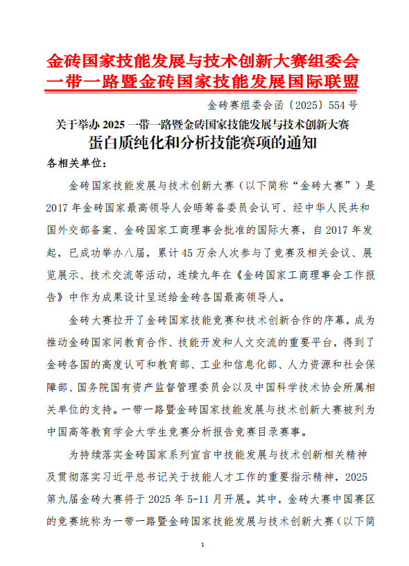 關(guān)于舉辦2025一帶一路暨金磚國家技能發(fā)展與技術(shù)創(chuàng)新大賽之蛋白質(zhì)純化和分析技能賽項V1