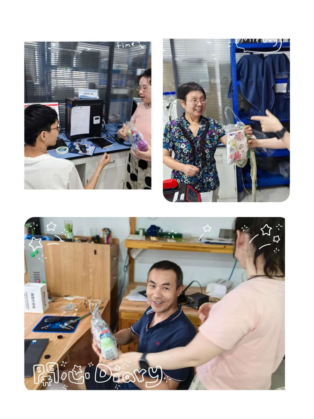 盡管窗外風(fēng)急雨驟,道路濕滑難行,但張淑媛一行心系企業(yè)職工,堅(jiān)持按計(jì)劃履約。當(dāng)他們帶著精心準(zhǔn)備的清涼慰問品踏入我司時(shí),風(fēng)雨浸濕了衣衫,卻更彰顯了此行的真誠(chéng)與分量。公司總經(jīng)理王培培及職工代表深受感動(dòng),熱情迎接:“臺(tái)風(fēng)天路這么難走,真沒想到大場(chǎng)開發(fā)區(qū)的同志們還堅(jiān)持來給我們送清涼!這份心意太重了,太感謝了!”